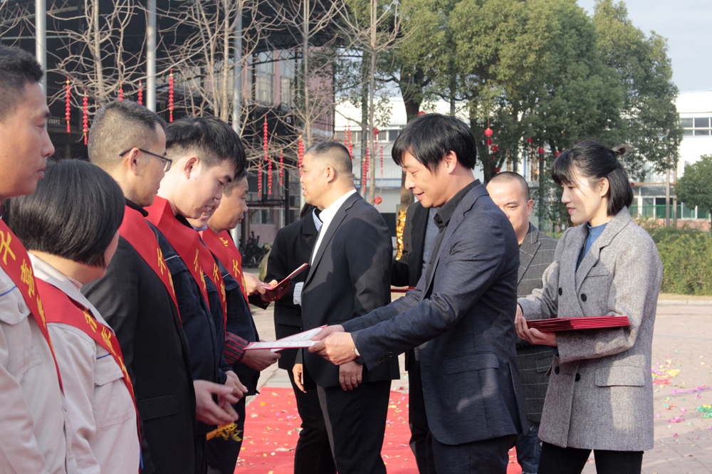 隨后,進(jìn)行了2019年度優(yōu)秀員工和黨員的表彰儀式,各事業(yè)部共有41位人員和1位黨員獲得了優(yōu)秀員工和優(yōu)秀黨員的榮譽(yù)稱號。各事業(yè)部優(yōu)秀員工依次上臺,由總經(jīng)理代表集團(tuán)為他們授予榮譽(yù)證書及獎(jiǎng)勵(lì)。當(dāng)一份份沉甸甸的證書交到他們手上時(shí),便是對他們努力工作的最大肯定和褒獎(jiǎng),也希望未來他們能帶著千喜人的精神繼續(xù)前行,不斷挑戰(zhàn),不斷超越。同時(shí),集團(tuán)辦公室韋偉作為優(yōu)秀員工代表上臺發(fā)言:感謝公司提供的平臺,讓她能夠在工作中實(shí)現(xiàn)自我價(jià)值,同時(shí),也感謝千喜這個(gè)大家庭,讓她在緊張的工作之余體會(huì)到了家的溫暖和親友般真摯的情誼。未來,依然會(huì)在自己的崗位上發(fā)光發(fā)熱,為千喜集團(tuán)的發(fā)展貢獻(xiàn)自己的力量。