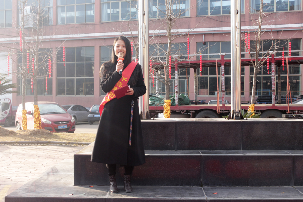 首先,進(jìn)行的是升國旗儀式。當(dāng)雄壯激昂的國歌奏響時(shí),五星紅旗徐徐升起、迎風(fēng)飄揚(yáng),全體人員莊嚴(yán)地向國旗行注目禮。禮畢后,千禧龍纖事業(yè)部總經(jīng)理陳宏則作為各事業(yè)部總經(jīng)理的代表,上臺發(fā)表致辭。致辭中,陳宏總結(jié)了2019年度千喜集團(tuán)各事業(yè)部取得的成就與收獲,肯定了全體人員的辛勤付出和努力,并對大家的付出表示衷心感謝。同時(shí),對于2020年度的多個(gè)“小目標(biāo)”,他也許下了自己的期許,希望在全體人員的努力下,各事業(yè)部都能在各自的行業(yè)中熠熠發(fā)光,不斷朝著既定的目標(biāo),努力前進(jìn),實(shí)現(xiàn)千喜集團(tuán)的價(jià)值,實(shí)現(xiàn)千喜人的價(jià)值。