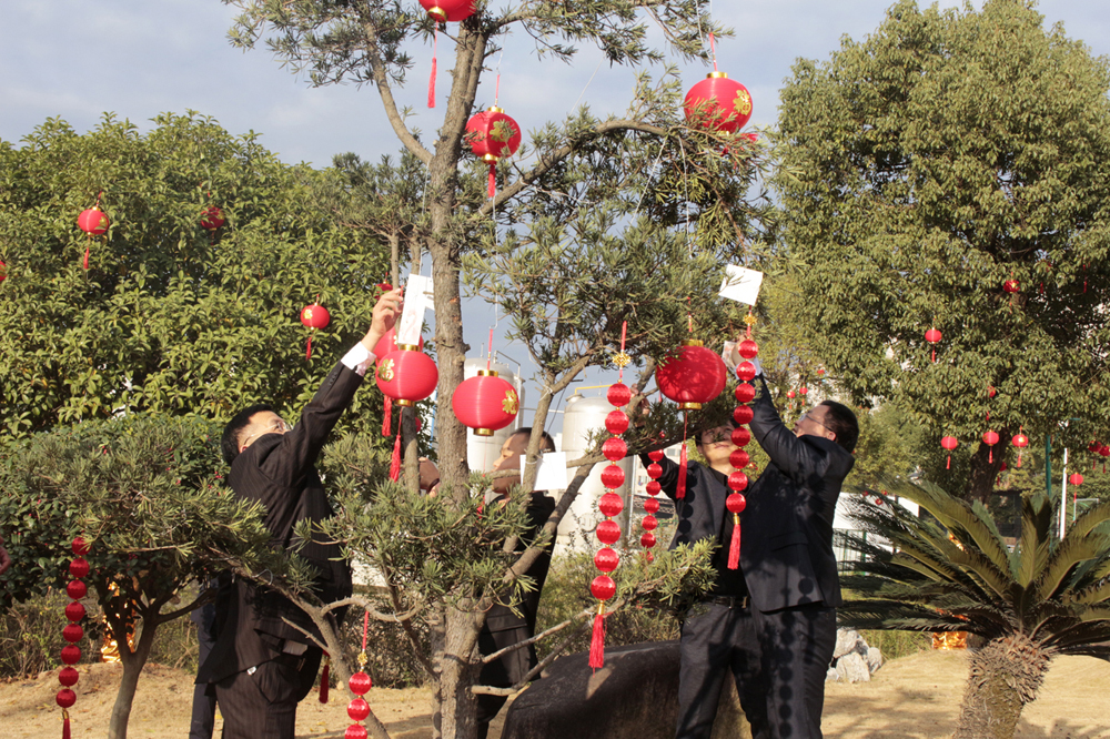 之后,主持人再次邀請各事業(yè)部的總經(jīng)理登臺,由他們分別寫下2020年的第一份心愿,許下對未來的美好愿景,并親自將自己寫的心愿卡掛到廠區(qū)的“心愿樹”上。在他們的引領(lǐng)下,全體在場人員紛紛移動(dòng)到廣場上的“心愿區(qū)”,在擺放了各式各樣心愿卡的桌臺旁,大家仔細(xì)的挑選著中意的卡片,一筆一劃寫下自己的心愿,然后鄭重其事的走到心愿樹前,將自己的心愿卡掛在高高的枝丫上,很快,一張張小小的心愿卡,便凝結(jié)成了一棵盛開著許許多多心愿的大樹,乘著微風(fēng)飄揚(yáng)著。 隨著心愿樹上的心愿卡越來越“茂盛”,掛好心愿卡的人員便來到了“禮品區(qū)”。在這里,各個(gè)事業(yè)部負(fù)責(zé)發(fā)放春節(jié)禮品的工作人員,已經(jīng)早早的守候在此了,看著他們一張張熟悉的臉龐,熟練地將禮品一一發(fā)到大家的手中,共同分享新年的喜悅與期盼。